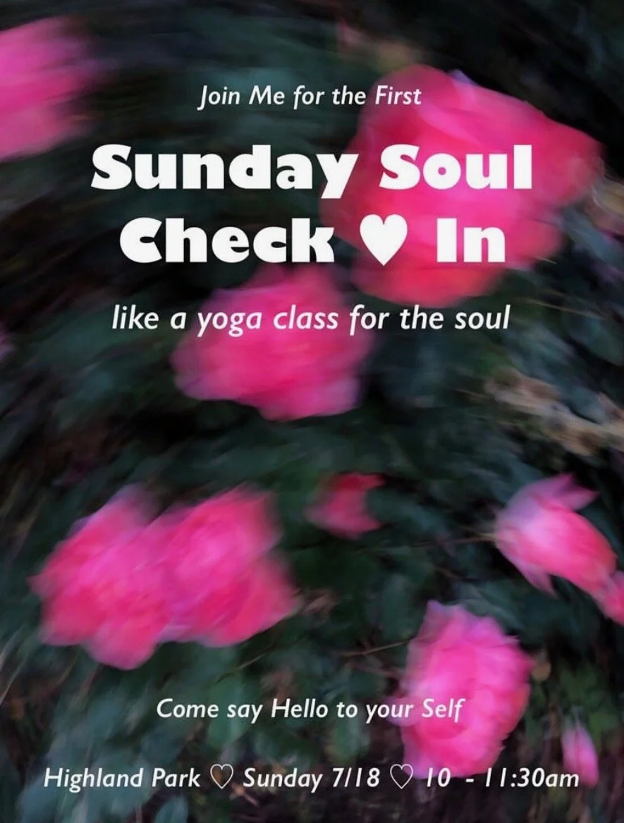 Sunday Soul Check-In™ is a 60/90 minute class designed to stretch the muscles of your whole being! It’s an exercise class for your soul!!!!